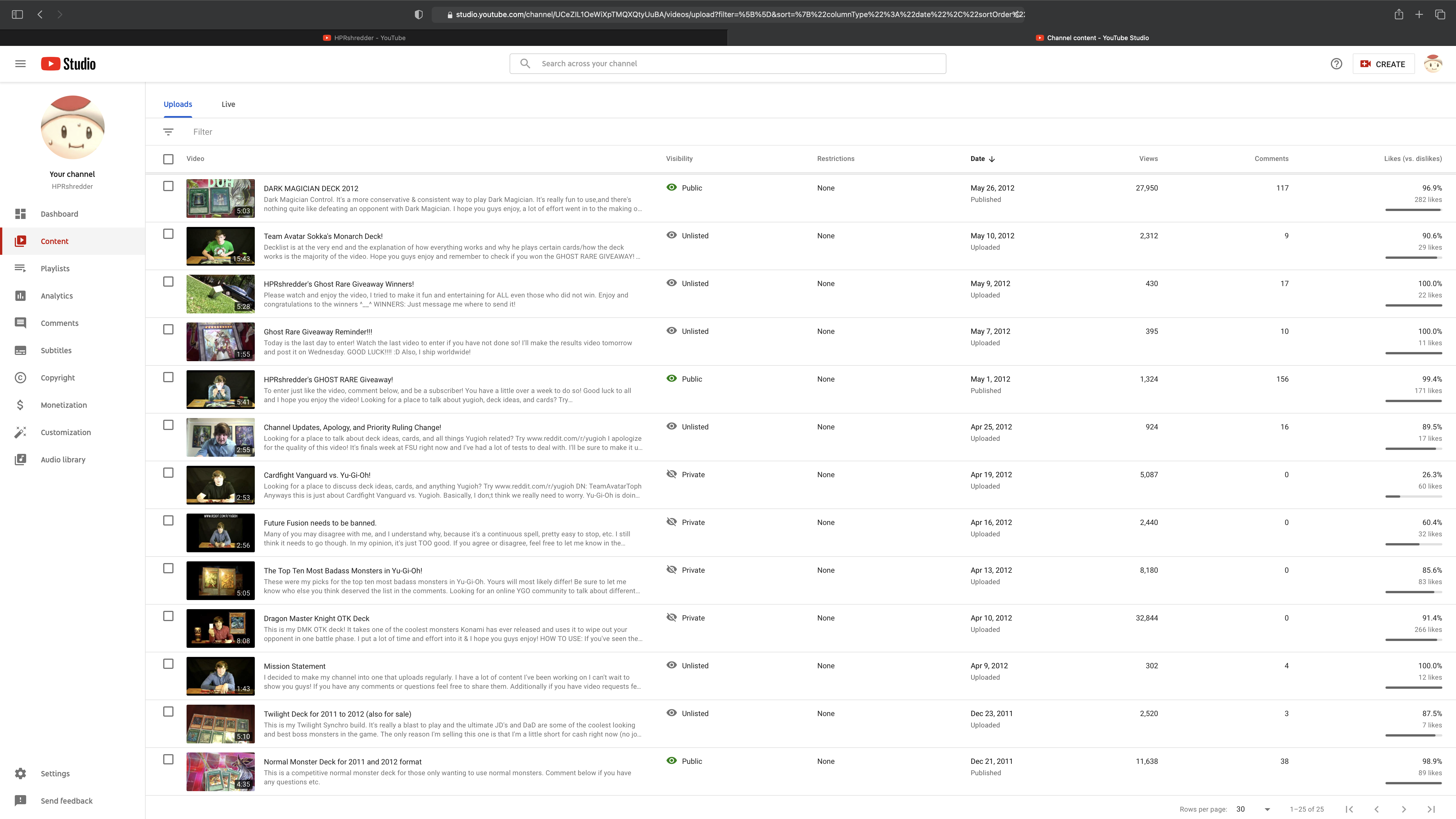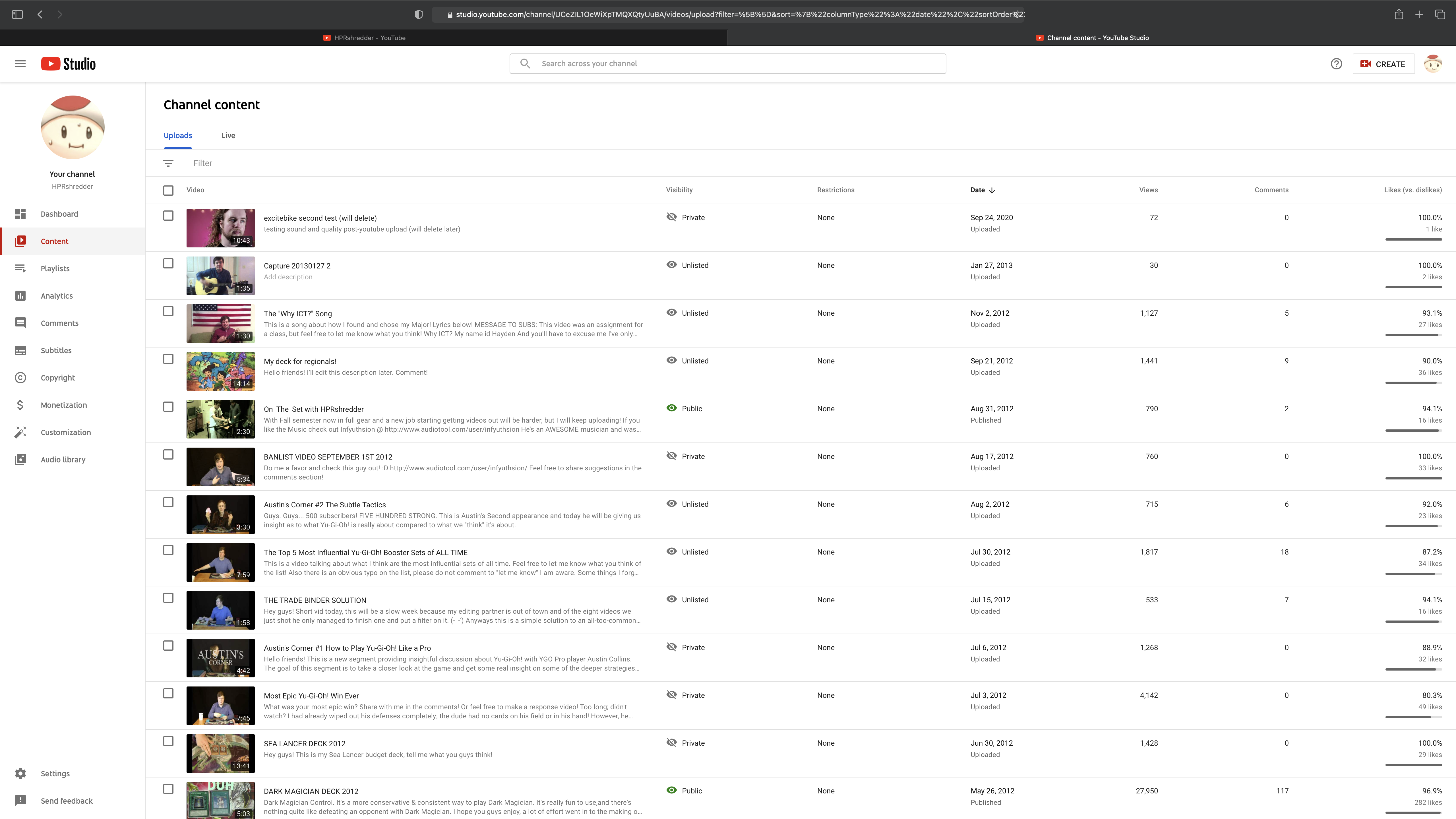 Years later, after I found myself getting back into Yu-Gi-Oh! during the back half of high school, I uploaded a video of a deck that I made because that seemed somehow easier than actually typing out the names of all the cards. That video is actually still up on my channel. It was posted in December of 2011. You can check it out here.